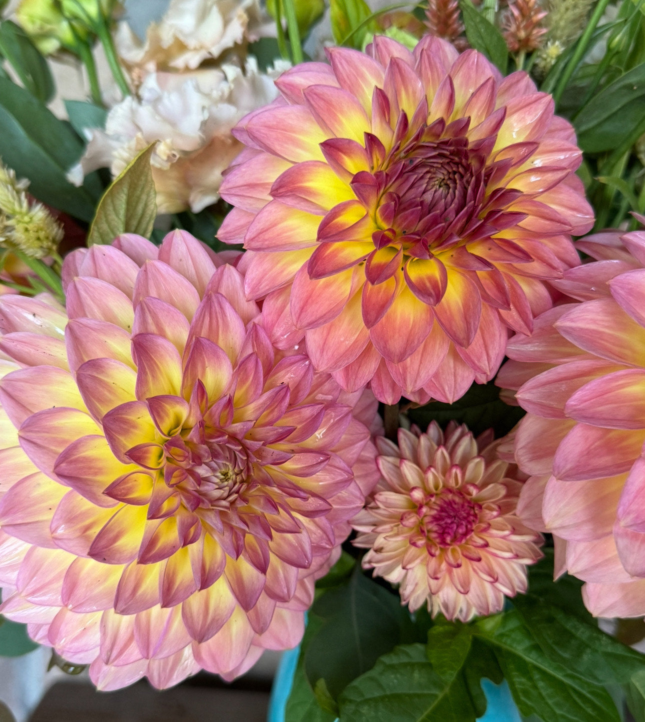 Bloomquist Jerry has gorgeous 5"-6" decorative form blooms with a beautiful mix of light yellow ombre to mocha-peachy-pink near the tips. More mocha-peach late-season, and shining as a paler peach and yellow in early summer, this variety is stunning and great for long vase life.