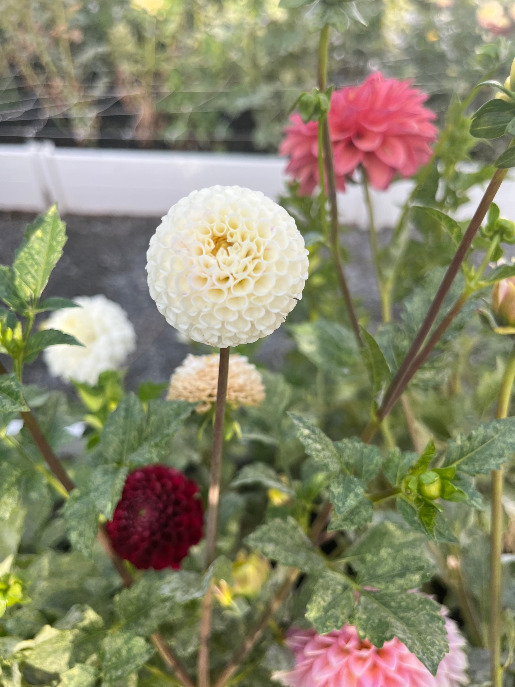 The Bowen dahlia is a creamy white pompon dahlia with blooms up to 2 inches. This is a perfect dahlia to add to bridal bouquets. Plants are 4 feet tall and have long sturdy stems.